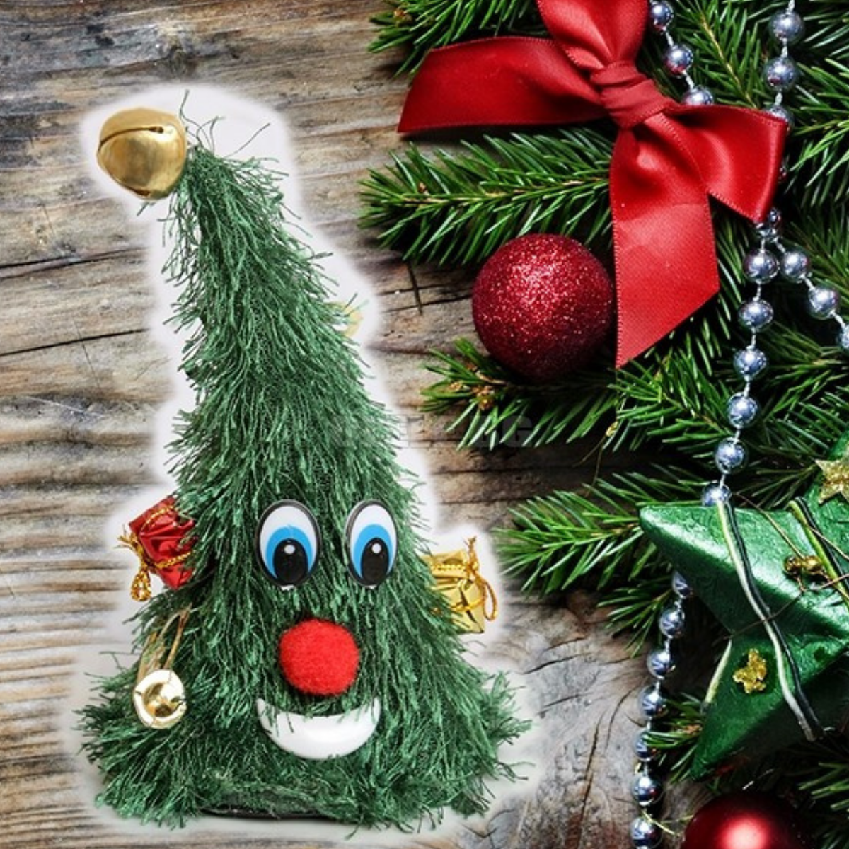 – “Dans eden” yeşil yılbaşı ağacı motifli figür, üzerine bastığınızda ya da mekanizma çalıştığında hafifçe sallanır, müzik eşliğinde hareket eder.