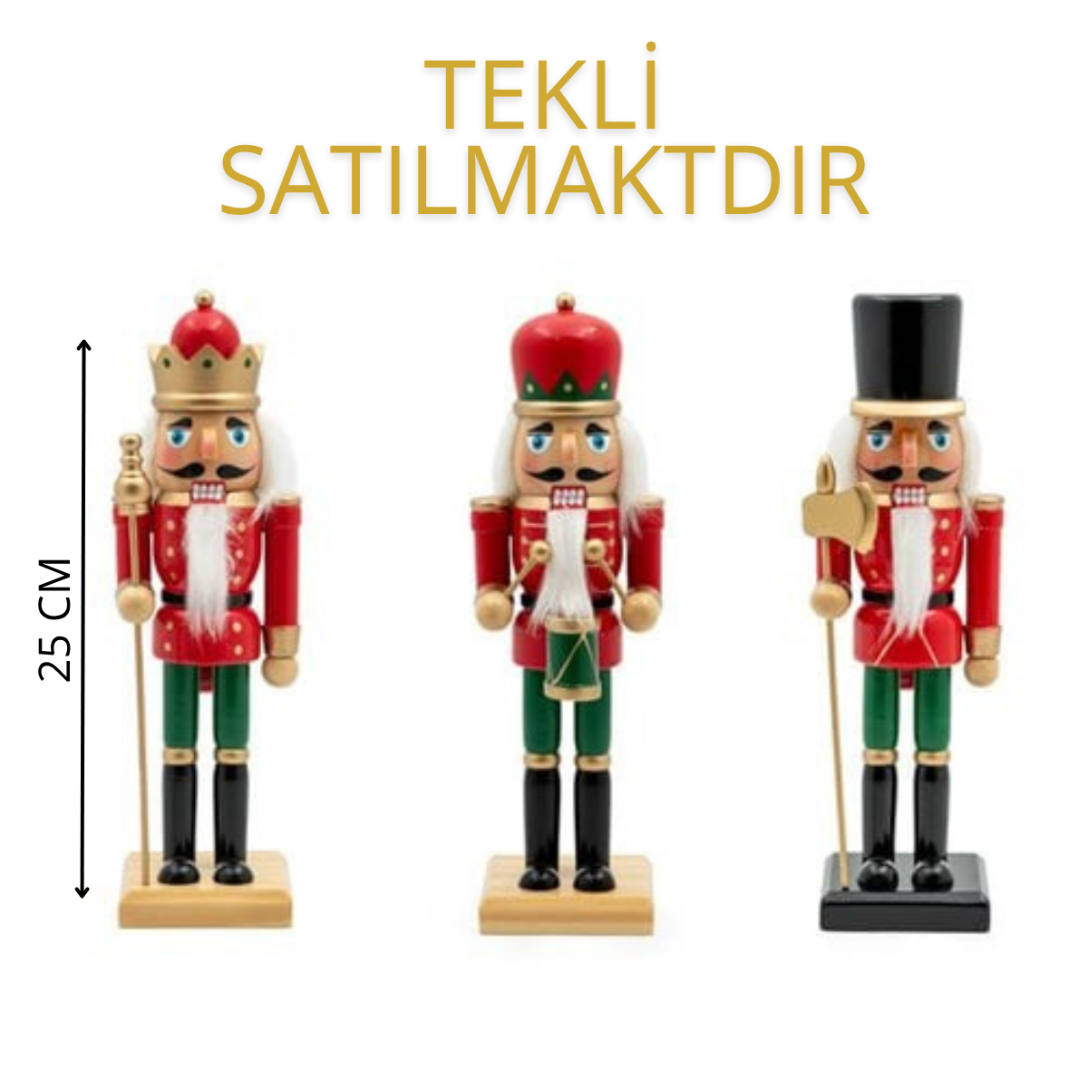Yılbaşı dekorasyonuna klasik ama modern bir dokunuş ekleyin! Bu 25 cm boyundaki ahşap fındıkkıran figürü, üç farklı stil ve tasarım seçeneğiyle sunuluyor. Düzenli ve minimalist dekorlardan, pastel ya da klasik renk tonlarına kadar birden fazla seçeneğe uyum sağlıyor.