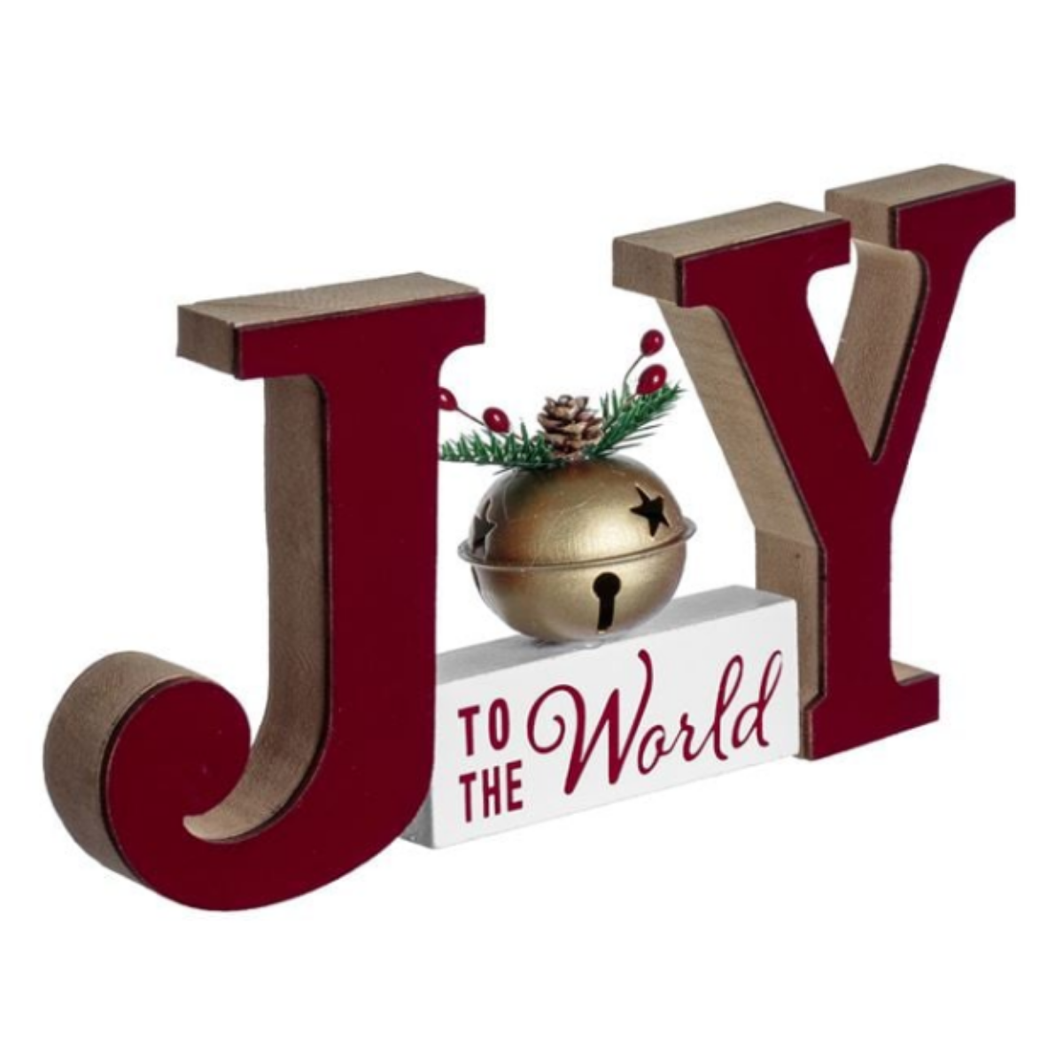 Bordo kadife kapaklı ve zilli JOY ahşap Noel dekoratif tabelası.