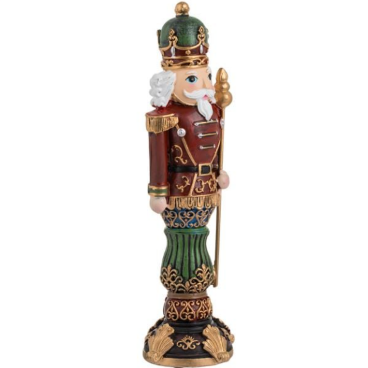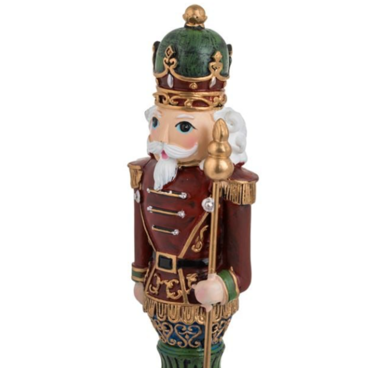 27 cm boyundaki bu şık fındıkkıran figürü, kırmızı kostümü ve sihirli asa detayıyla yılbaşı dekorasyonunuza klasik ama etkileyici bir dokunuş katıyor.