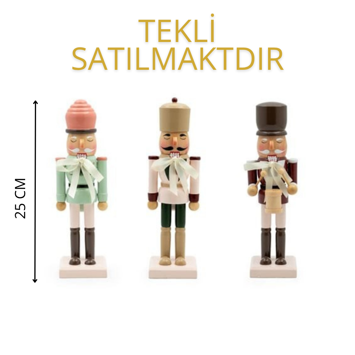 Pastel tonlarda tasarlanmış bu Ahşap Fındıkkıran Biblo, klasik Fındıkkıran figürünün modern ve soft bir yorumudur. 25 cm yüksekliği ile hem masa üstünde hem raflarda hem de yılbaşı ağacı yanında mükemmel bir dekoratif tamamlayıcıdır.