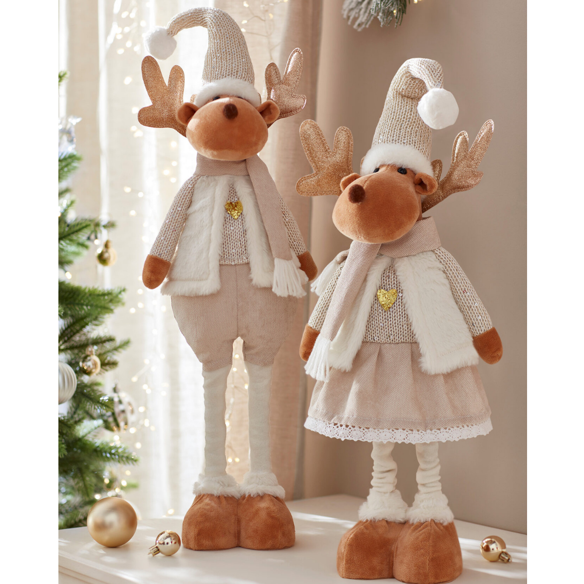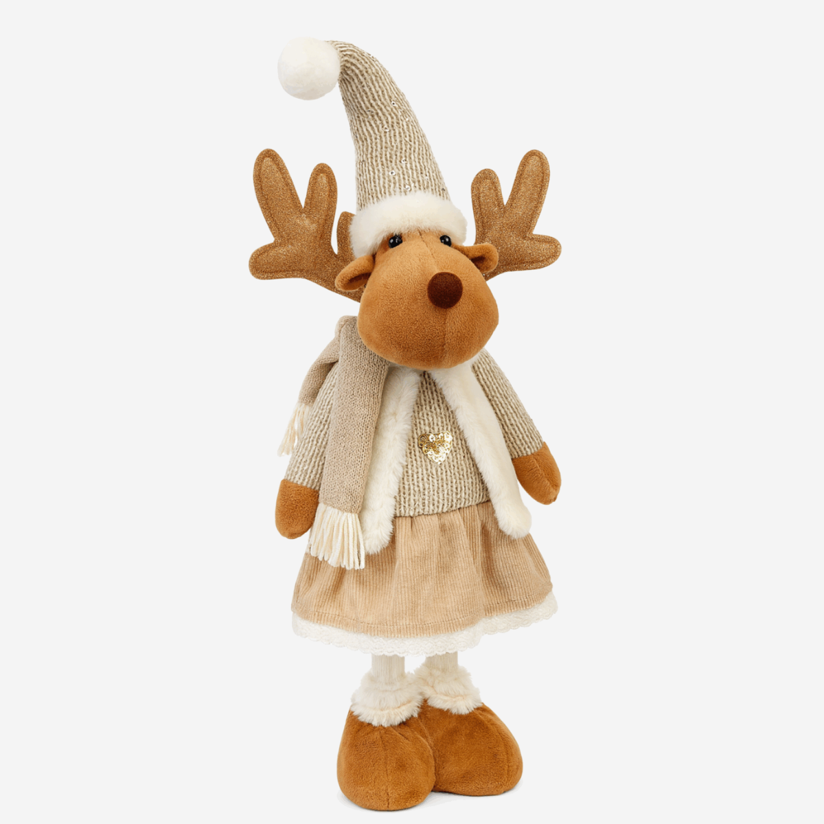Teleskopik bacaklı ren geyiği hem kısalır hem de büyüleyebilir. Uzun bacakları, dekorasyonunuzun sıra dışı ve etkileyici görünmesini sağlar.